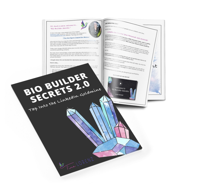 Bio Builder Secrets is your step-by-step guide for creating original, compelling, and engaging LinkedIn profiles for your clients.