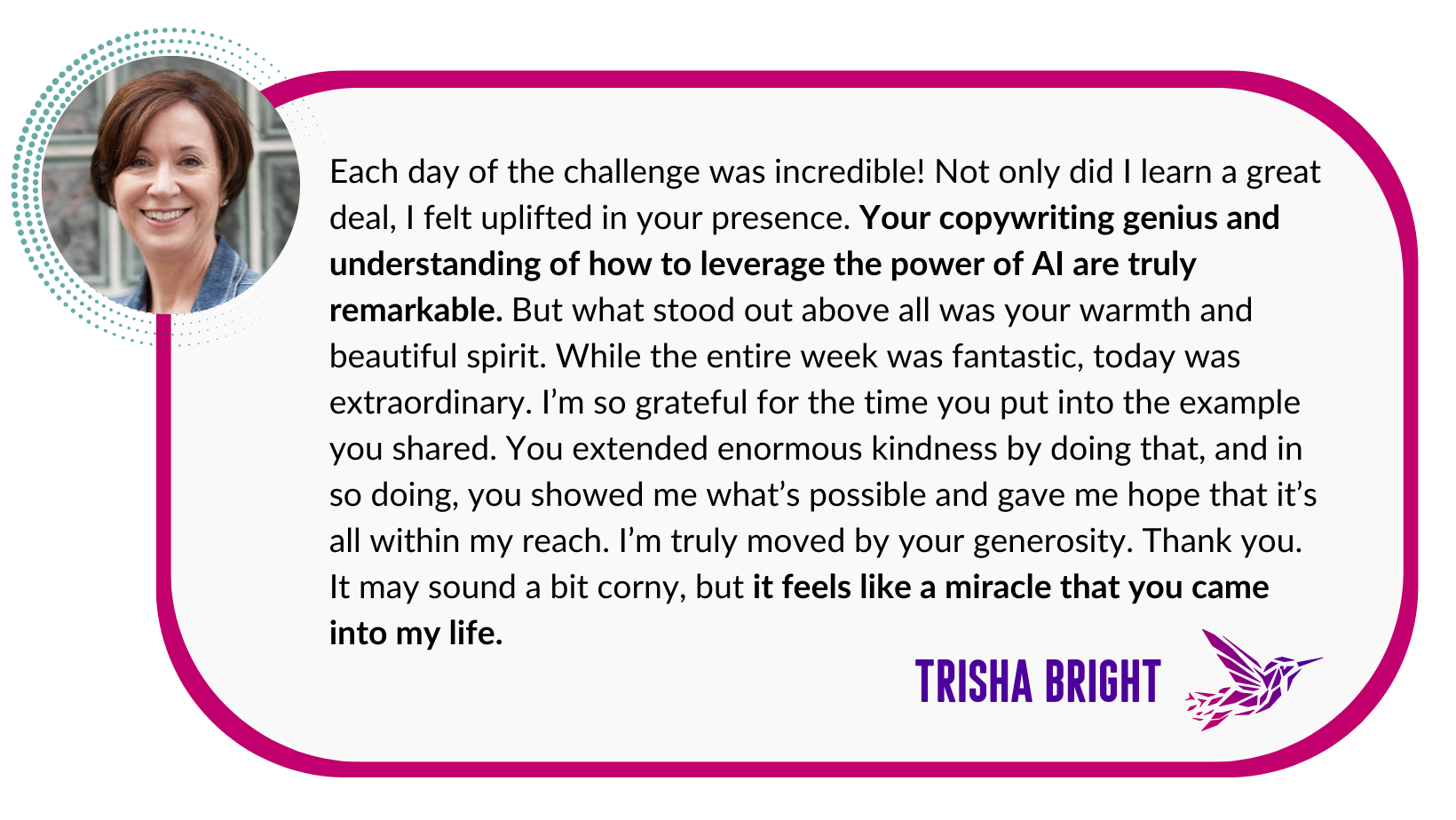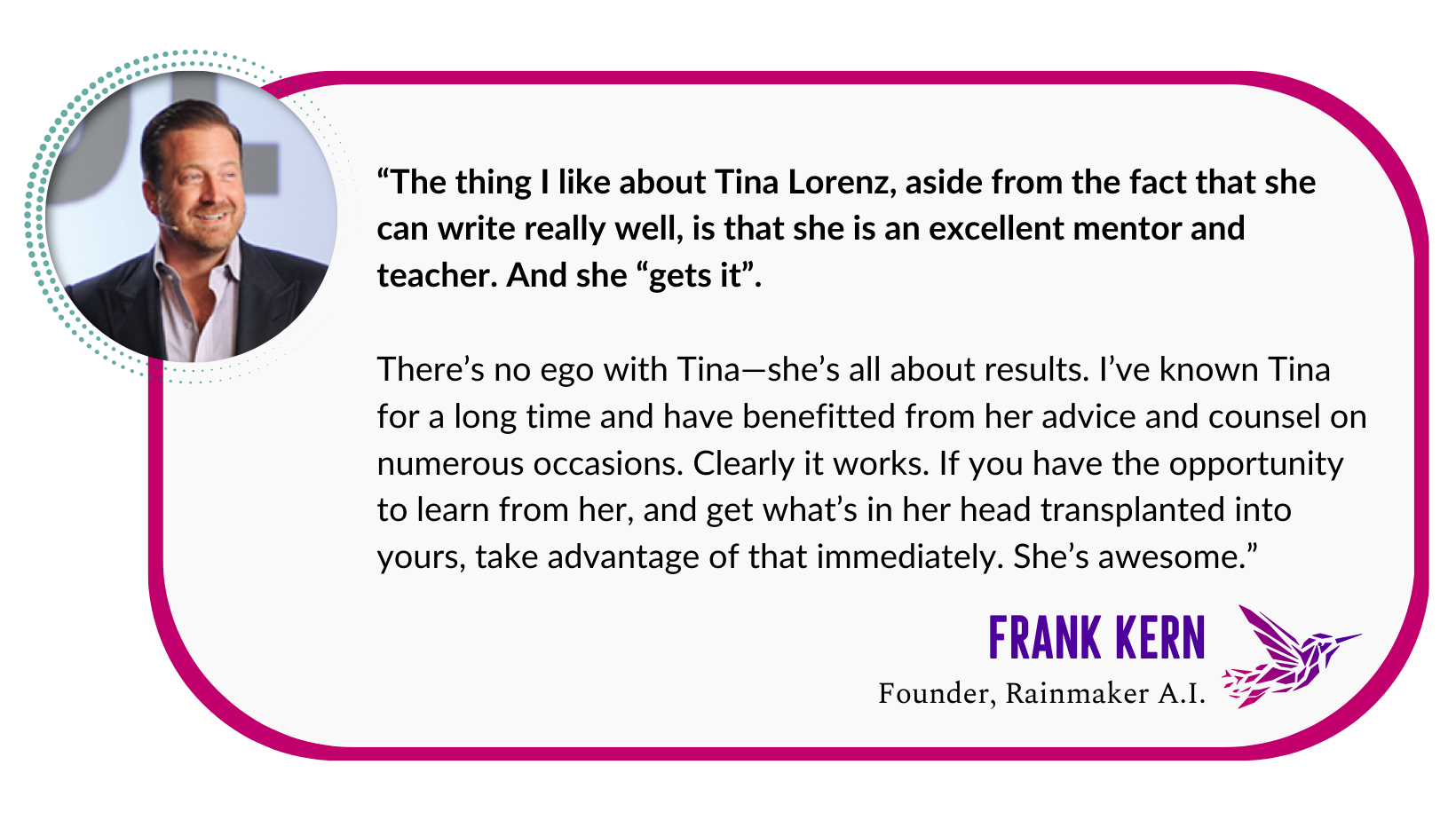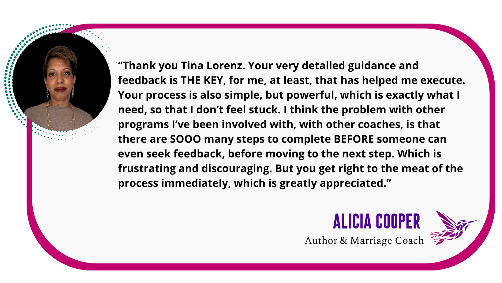 “What surprised me most was the intuitive nature of Tina’s AI assistant, Flora. With her help, I was able to dig deep into exploring the reasons behind each question asked of me.”